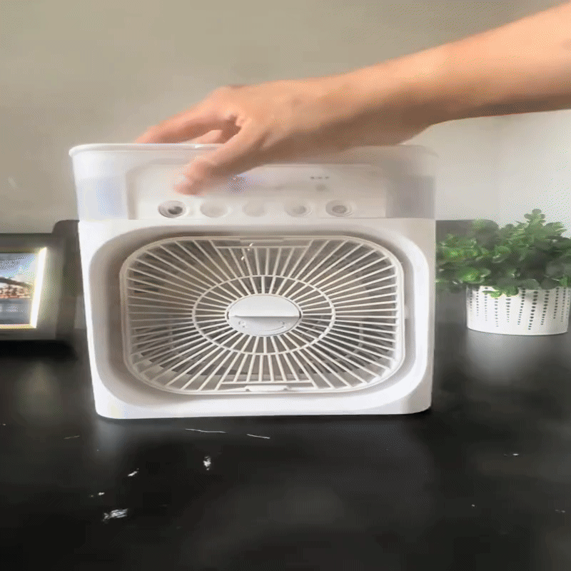 "Over-portable Fan"は、手のひらサイズなのに、あなたの空間を一瞬で“灼熱地獄”から“極寒パラダイス”へ変える魔法のような冷風機。