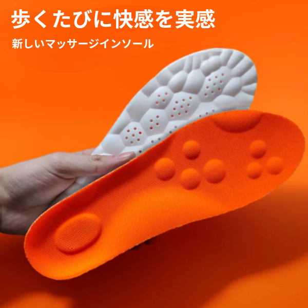 立体構造が土踏まずを支え、体重を均等に分散。足底筋膜炎や扁平足の痛みを和らげます。